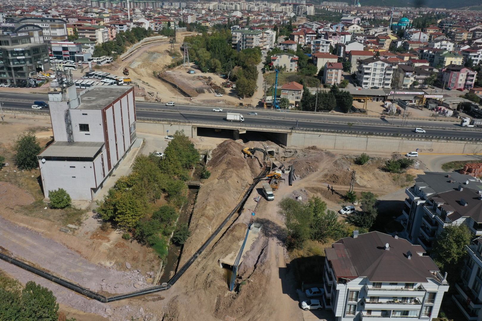 Gece gündüz çalışarak yoğun mesai yapan Büyükşehir ekipleri, saha çalışmalarını en kısa sürede tamamlayarak bölgedeki trafiğin rahatlamasını amaçlıyor. Çalışmalarda şu an Körfez Kent güzergâhı üzerinde zemin iyileştirme yapılırken, dolgu ve taş duvar imalat çalışmaları da süratle devam ediyor. Ayrıca Kuzey Yanyol üzerinde Elektrik OG Hatlarının deplase çalışmaları tamamlanırken hatlar yer altına alındı. Güney Yanyol üzerinde elektrik altyapı çalışmalarına başlandı. Bölge trafiğine nefes aldıracak projede dere ıslahı betonarme imalatı, TÜPRAŞ su iletim hattı ve İSU atık su hattı deplase çalışmaları da devam ediyor.