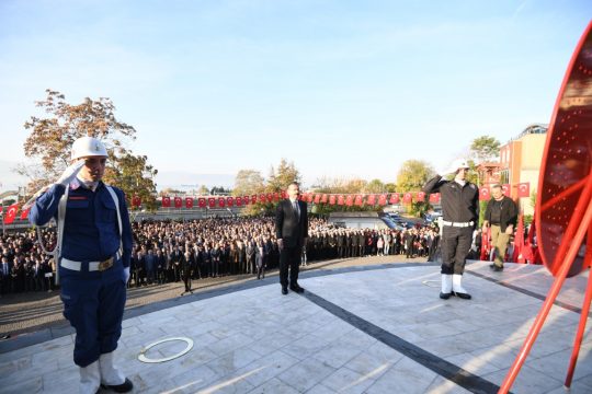 Kocaeli Valiliği, Deniz Eğitim ve Öğretim-Garnizon Komutanlığı ve Büyükşehir Belediye Başkanlığının çelenklerini Atatürk Anıtına sunumundan sonra saatler 09.05’i gösterdiğinde 2 dakikalık siren eşliğinde saygı duruşu ve İstiklal Marşı’nın okunmasının ardından Bayraklar yarıya indirildi.