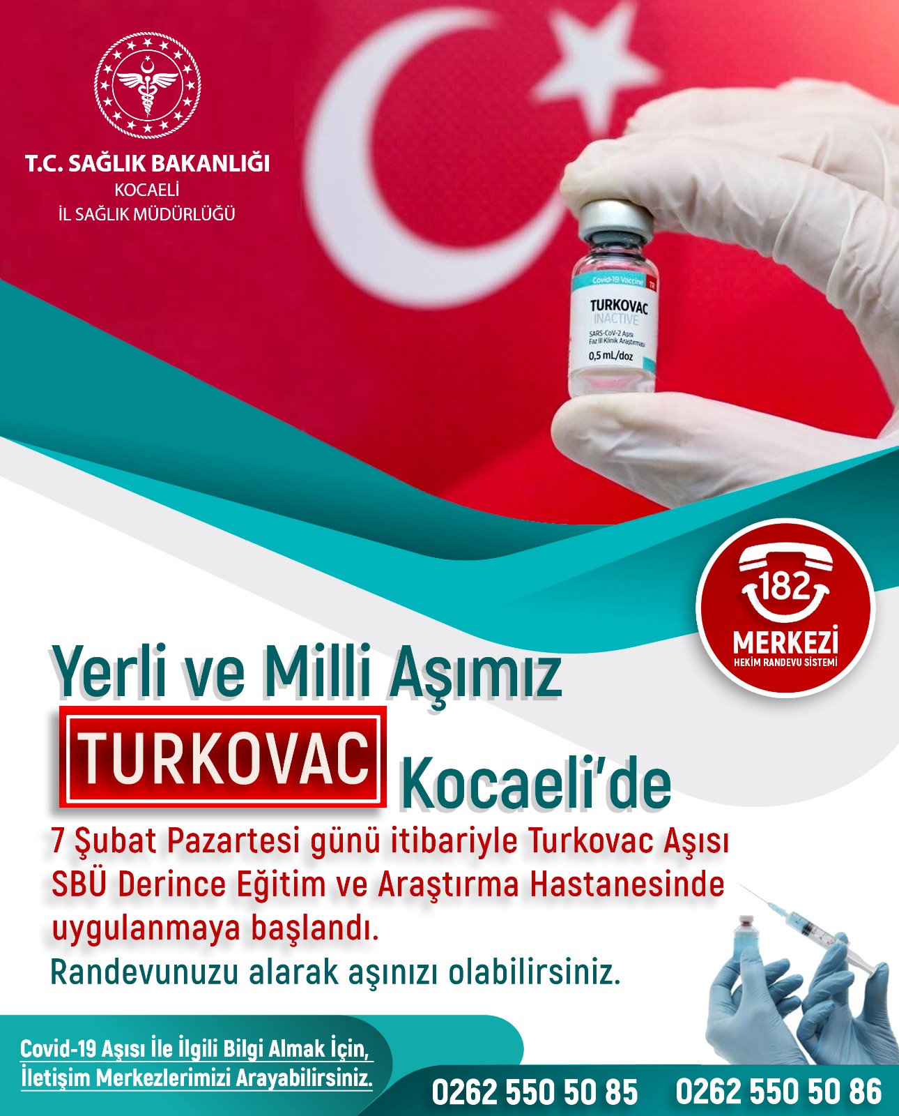 Pehlevan “Turkovac aşısı olmak isteyen vatandaşlarımız bugünden itibaren MHRS web/mobil ve Alo 182 üzerinden randevularını alarak aşılarını olabilirler. İsteyen vatandaşlarımız tercihlerini yerli aşıdan yana kullanabilirler” ifadelerini kullandı.
