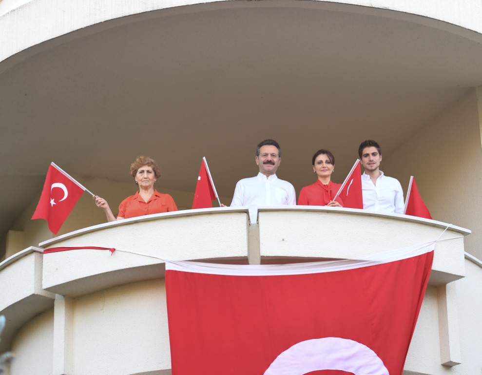 Bu kapsamda ilimizde de, tüm Kocaeliler ile birlikte Vali Hüseyin Aksoy, eşi Sayın Hülya Aksoy, oğlu ve kayınvalidesi ile birlikte evlerinin balkonundan İstiklal Marşımızı okuyarak, ilimizde ve ülkemizde yaşanan coşkuya ortak oldular.